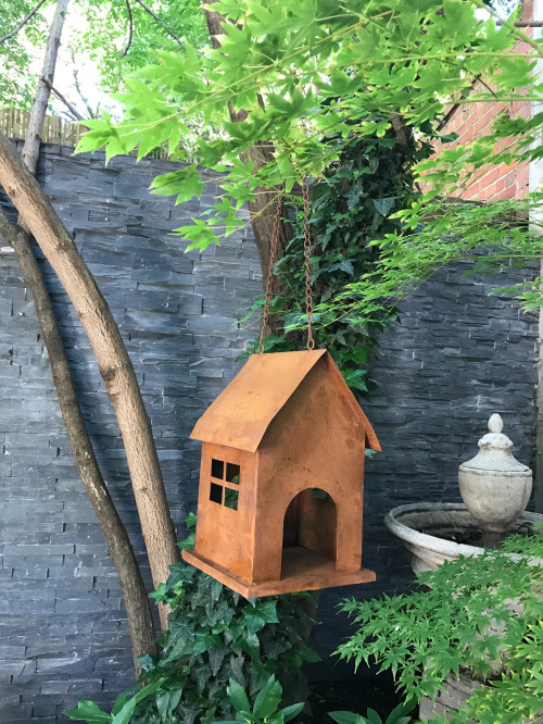 Invite your feathered friends to visit and create a bit of rustic charm in your garden by hanging this bird house .
