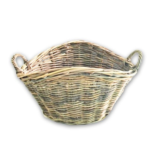 A Vintage style rattan oval wash basket with high sides, featuring a generous area for washing to be held.