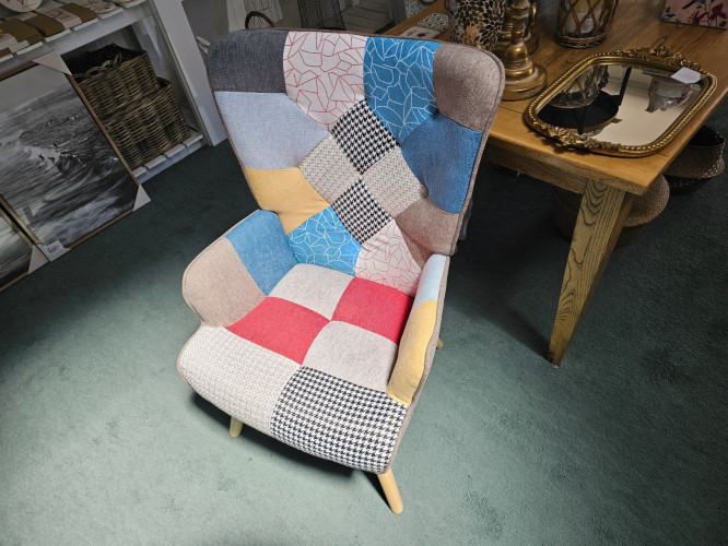 A comfy delightful chair, great in anyroom to add a pop of fun and colour